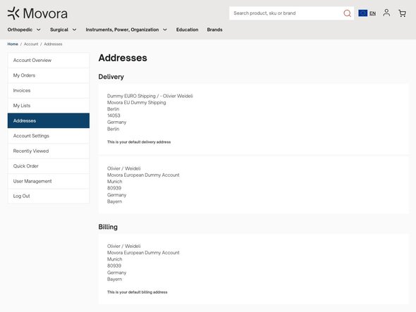 Addresses is where you will find all your Delivery Addresses and Billing Addresses.