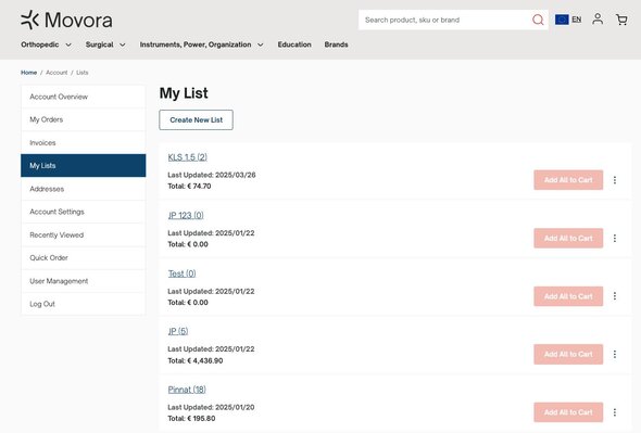 My Lists is where you will find all your Lists of product you can order by adding to cart. When you have a list under my lists you can customize these lists.