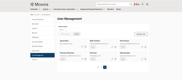 Under User Management, you will be able to view all users under an account and as an admin role you will be able to add new users. Admins will have permissions to edit or delete users. Any orders purchased with be connected to the account and the users who ordered.