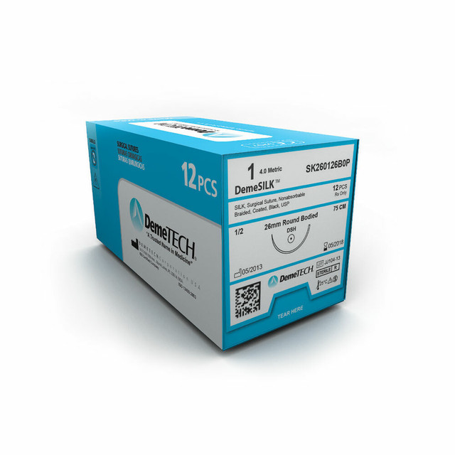 DemeTECHDemeTECH Silk, 75cm Long, Black, 0, 25mm Needle, 1/2 Circle, Reverse Cutting | SK260025B4PLog in for pricing